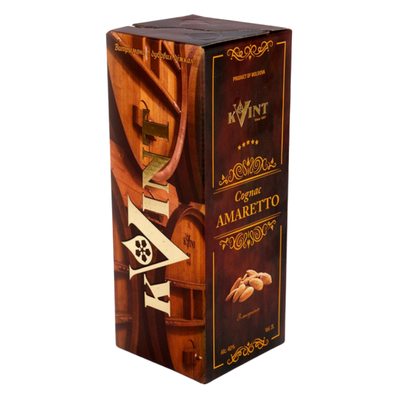 Коньяк Kvint Amaretto є вишуканим алкогольним напоєм, що походить з Молдови. Бренд Kvint має довгу історію, яка розпочалася ще у 1897 році. Виробництво розташоване в місті Тирасполь, де завдяки унікальному поєднанню кліматичних умов та традиційних методів виготовлення коньяків, було створено широкий асортимент продукції, відомої своєю якістю та автентичністю.